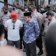 Anggota DPRD Provinsi Banten mendatangi massa aksi unjuk rasa menolak kenaikan harga BBM dari kelompok Gerakan Banten Bersatu (GBB) di depan Gerbang Gedung DPRD Provinsi Banten, Rabu (14/09/2022).