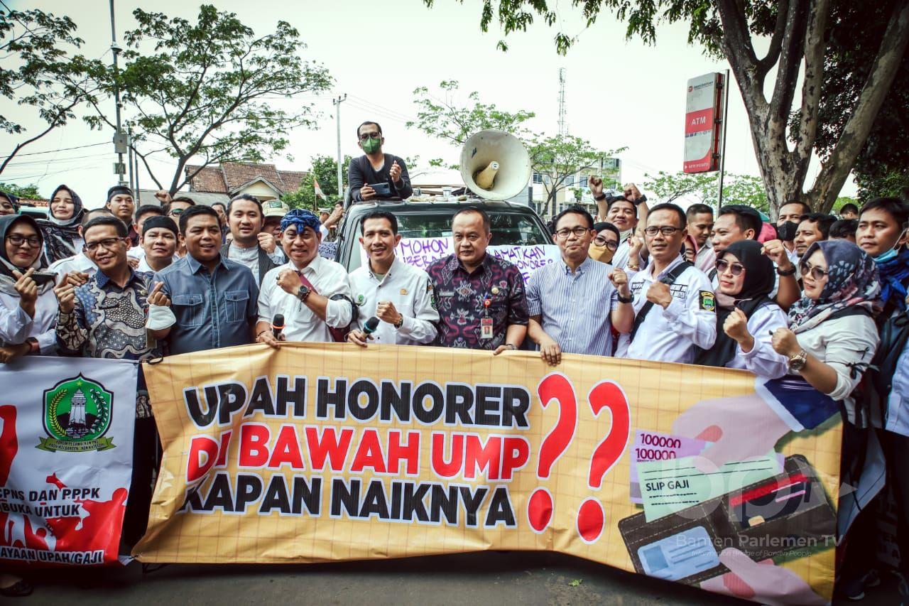 Dalam aksi ini para pegawai non-ASN meminta DPRD Banten untuk memperjuangkan hak-hak mereka terkait kejelasan status dan upaya kenaikan kesejahteraan pegawai non-ASN.