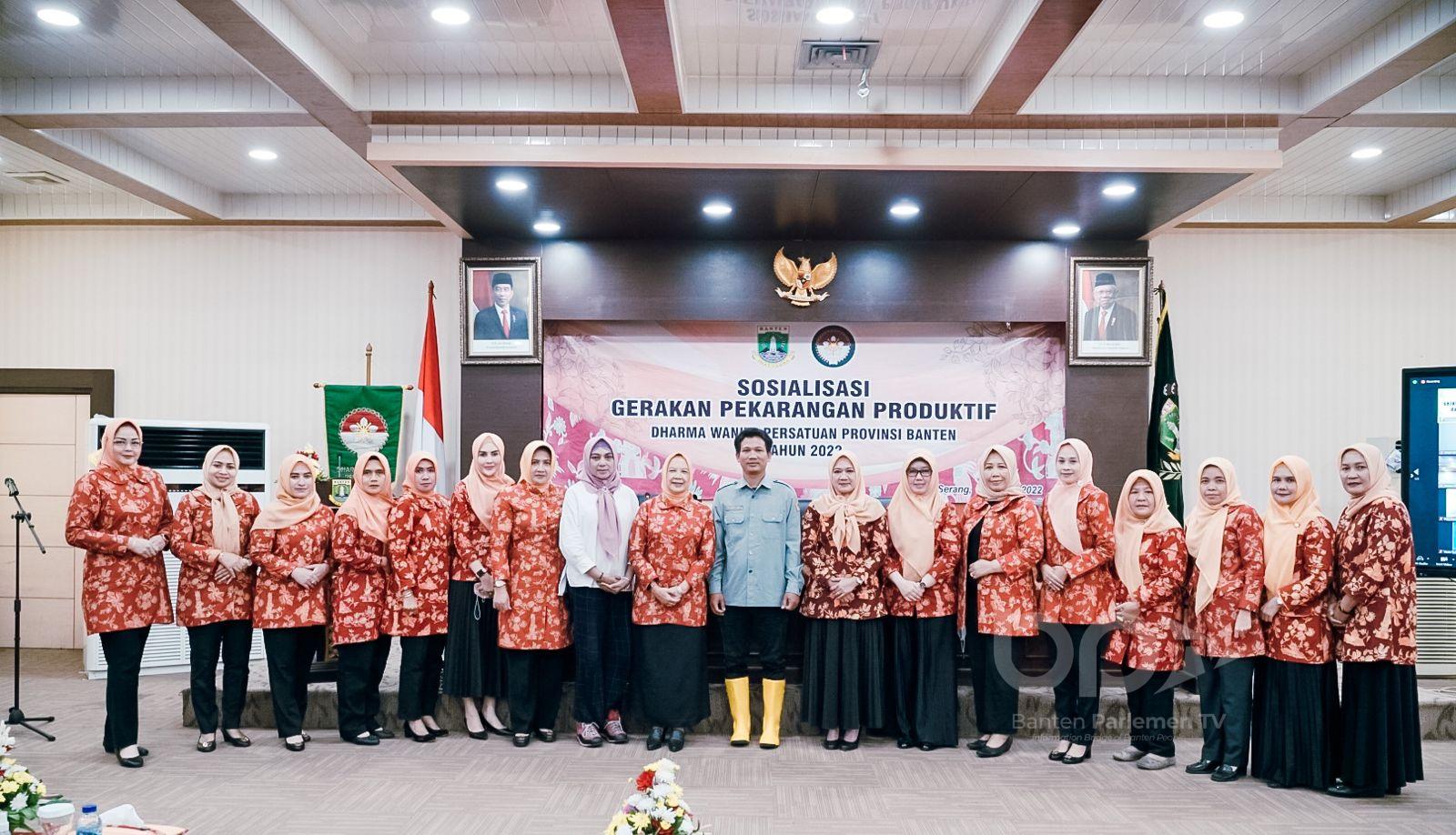 SERANG,- Ketua Dharma Wanita Persatuan (DWP) Ny. Tuchfah Tranggono membuka acara Sosialisasi Gerakan Perkarangan Produktif Dharma Wanita Persatuan Provinsi Banten Tahun 2022 bertempat di Gedung Serba Guna DPRD Banten, Rabu (26/10/2022).