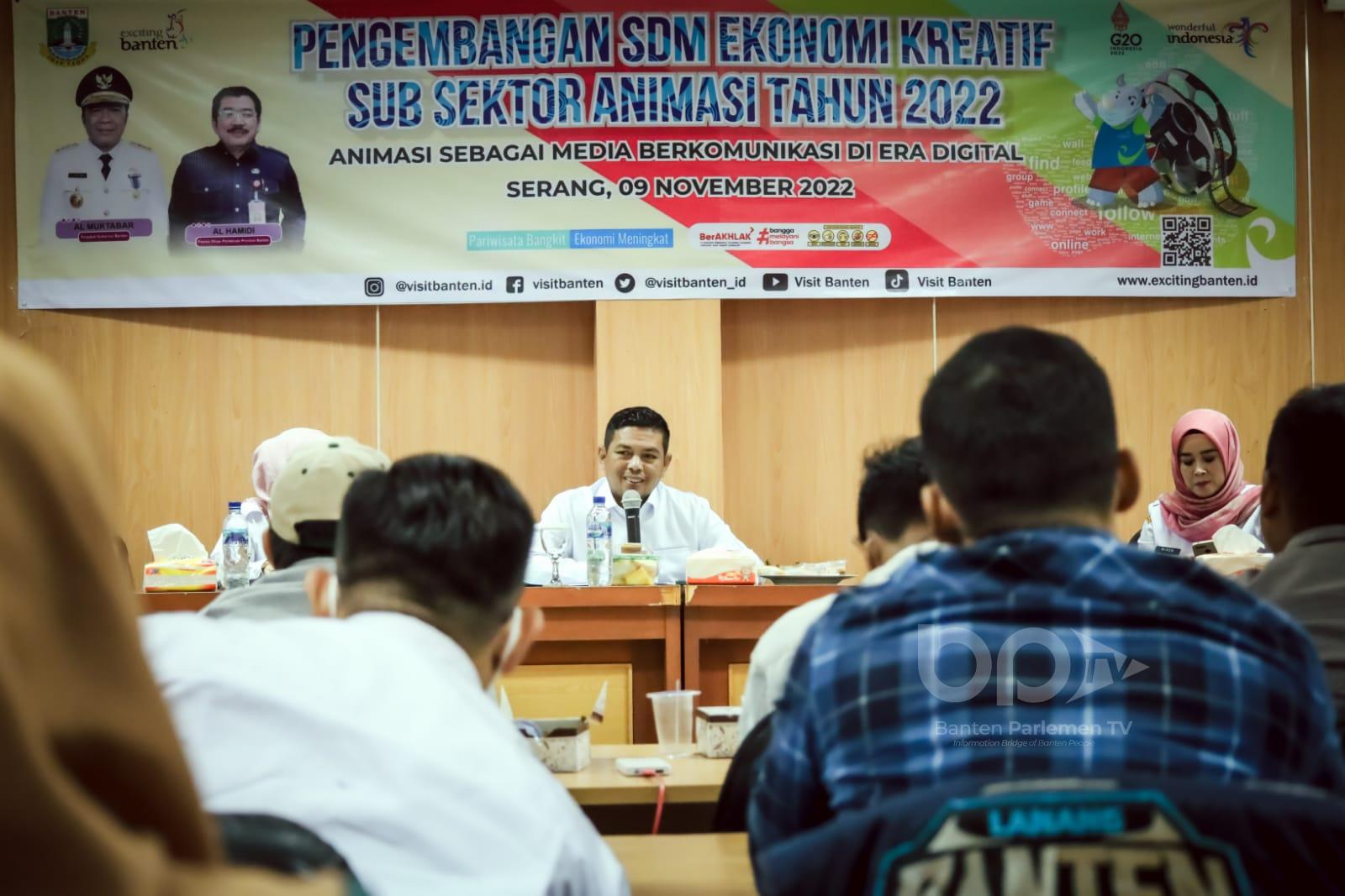 SERANG,- Pemerintah Provinsi Banten gencar melakukan pembinaan SDM untuk para pelaku ekonomi kreatif (ekraf) di tengah era ekonomi baru. Melalui Dinas Pariwisata, Pemprov Banten menggelar kegiatan pengembangan SDM ekonomi kreatif Sub Sektor Animasi, bertempat di Aula Dispar Banten, Rabu (09/11/22).