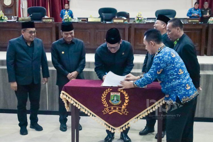 Rapat paripurna ini dipimpin oleh Wakil DPRD Banten Barhum H.S, dan didampingi oleh Wakil Ketua DPRD Banten H. Fahmi Hakim dan Budi Prajogo. Turut hadir pula oleh Pj. Gubernur Provinsi Banten Dr. Al Muktabar berserta unsur Forkopimda lainnya.