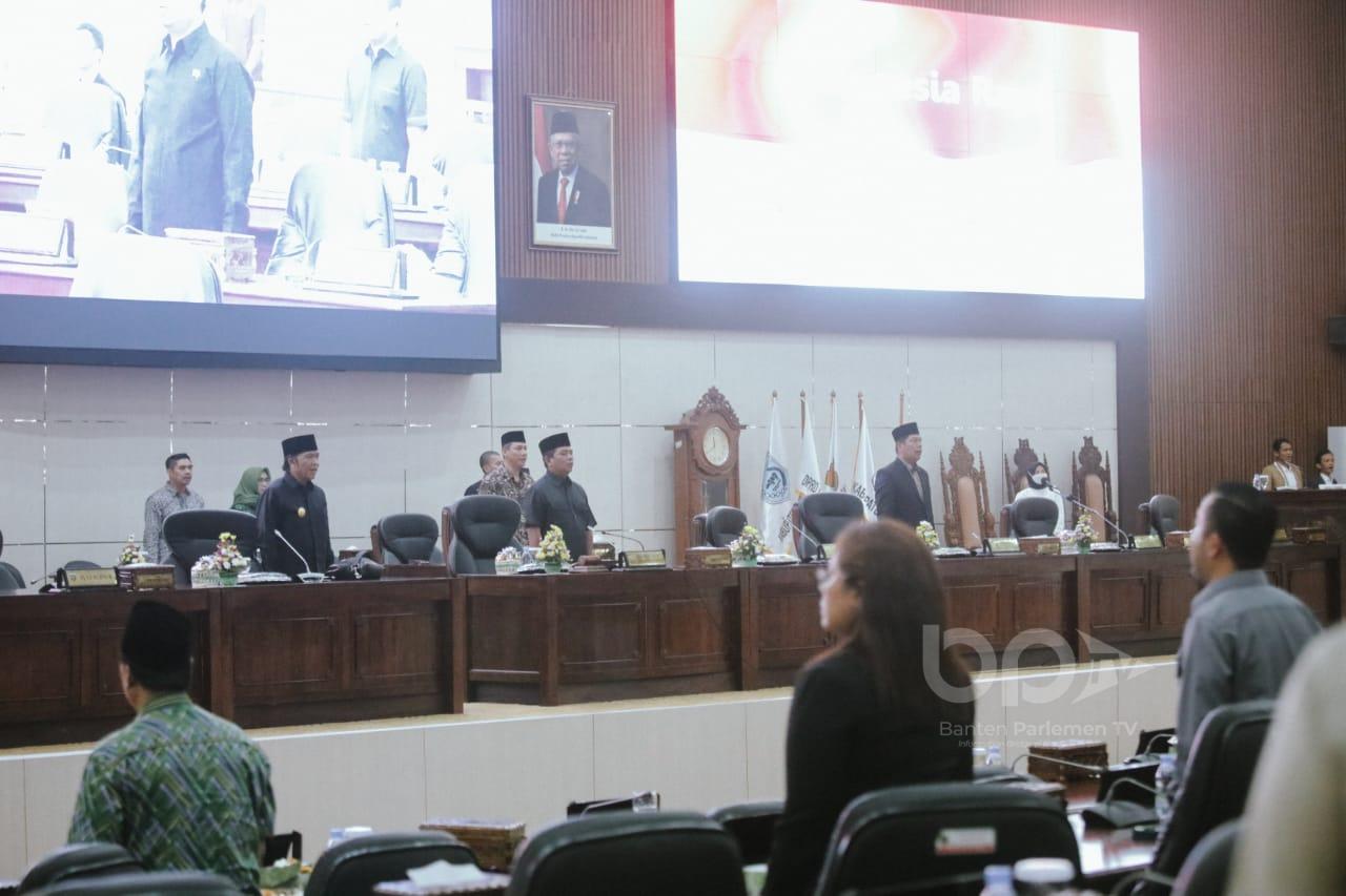 SERANG,- Pimpinan dan Anggota DPRD Provinsi Banten melakukan Rapat Paripurna Penyampaian Pendapat Gubernur terhadap Penjelasan DPRD atas Raperda Usul DPRD Provinsi Banten tentang Objek Kemajuan Kebudayaan Daerah, Kamis (12/10/2023).