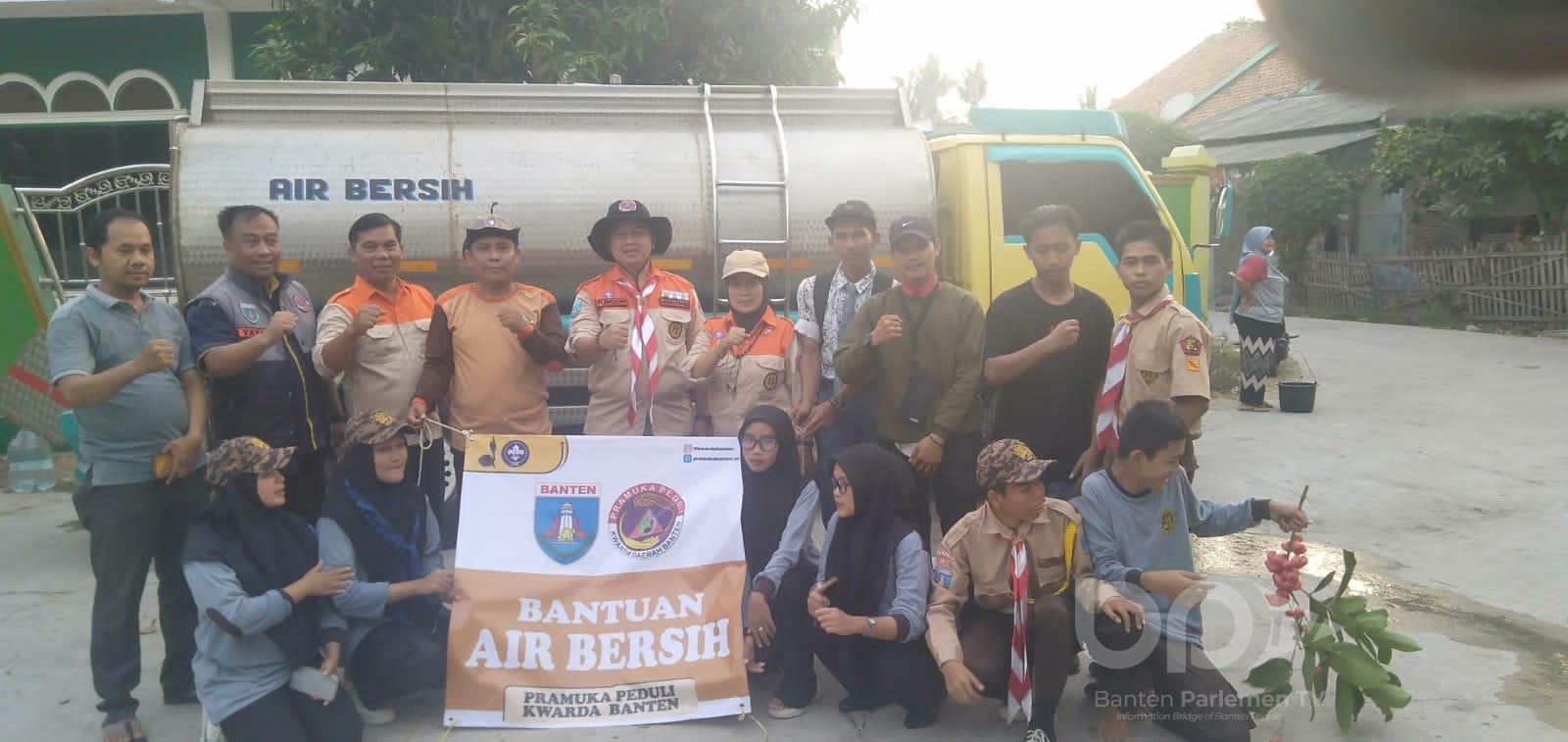 SERANG,- Gerakan Pramuka Kwarda Provinsi Banten salurkan air bersih untuk masyarakat Kampung Pengasinan dan Kampung Kedung Sentul, Desa Walikunkun, Kec. Carenang, Kab. Serang, Kamis (26/10/23).