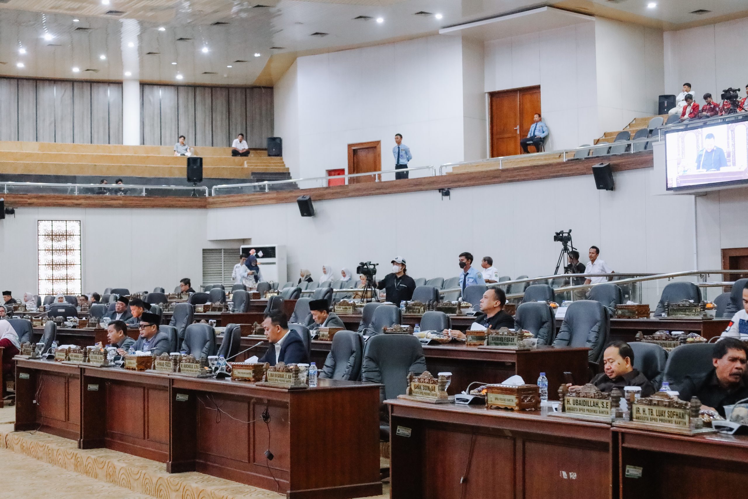 Rapat paripurna ini dipimpin oleh Wakil Ketua DPRD Banten H. Fahmi Hakim. Turut hadir pula oleh Pj. Sekretaris Daerah Provinsi Banten Virgojanti beserta unsur Forkopimda lainnya.