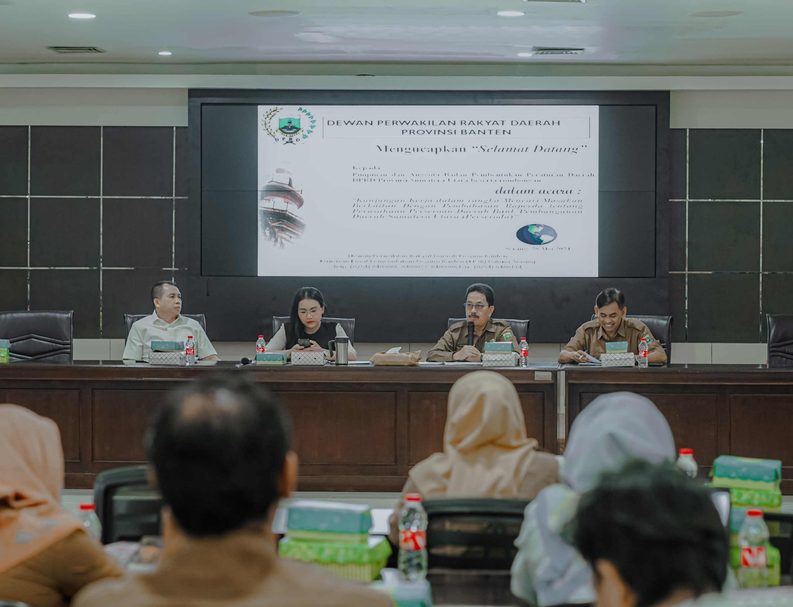 Disampaikan oleh Ketua Bapemperda DPRD Sumut Meryl Rouli Saragih, bahwa maksud dan tujuan dilaksanakannya kunjungan kerja ini yaitu untuk sharing dengan DPRD Provinsi Banten mengenai Raperda tentang Perusahaan Perseroan Daerah Bank Pembangunan Daerah Sumatera Utara.