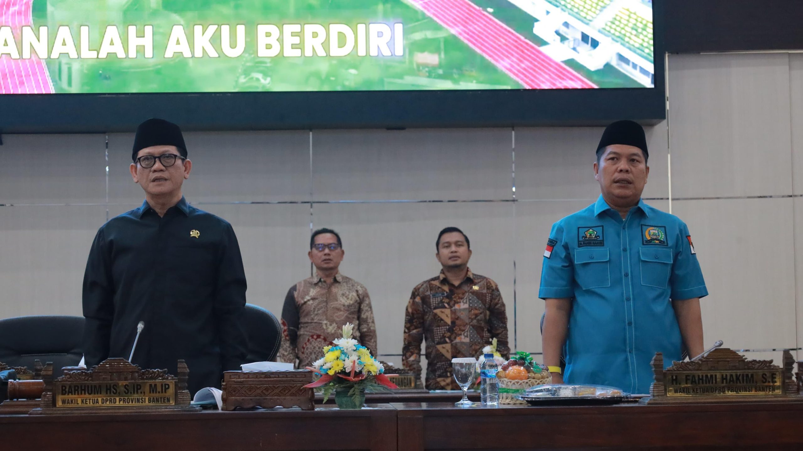 Wakil Ketua DPRD Provinsi Banten Barhum HS selaku pimpinan rapat paripurna menyampaikan agenda pada rapat ini adalah tanggapan fraksi-fraksi terhadap 2 (dua) Raperda Usulan DPRD Provinsi Banten tentang Pengelolaan Limbah Medis; dan Perlindungan Perempuan dan Anak Terhadap Tindakan Kekerasan.