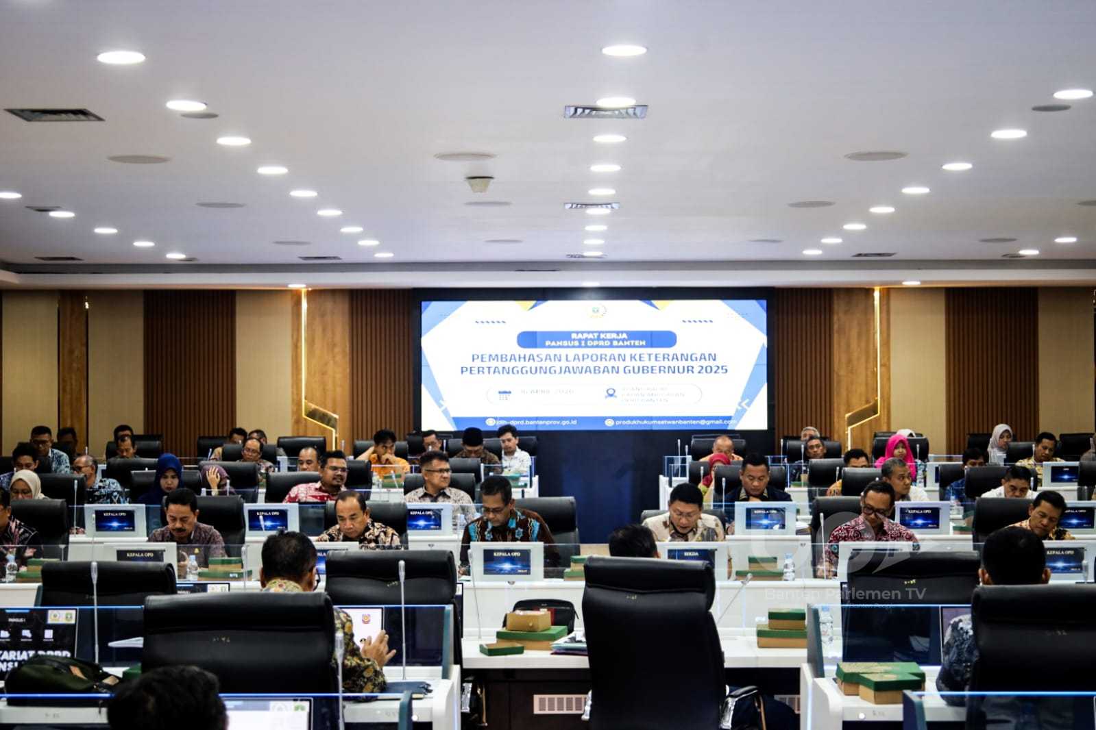 SERANG – Panitia Khusus (Pansus) I DPRD Provinsi Banten menggelar rapat kerja pembahasan Laporan Keterangan Pertanggungjawaban (LKPj) Gubernur Banten Tahun Anggaran 2025 bersama Tim Teknis dan Kepala OPD, di Ruang Rapat Badan Anggaran DPRD Banten, Kamis (16/04/2026).
