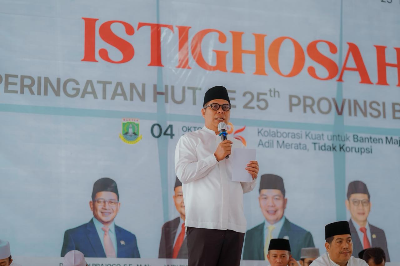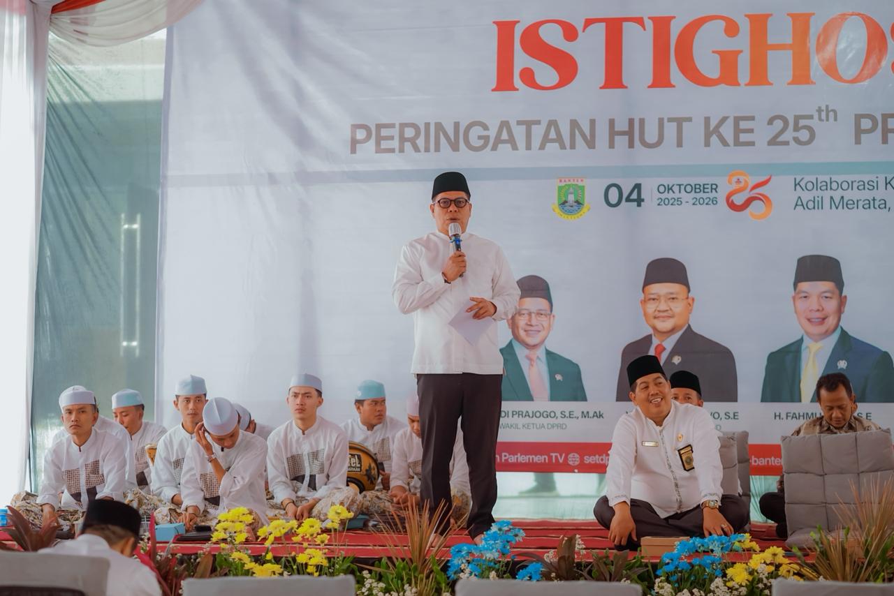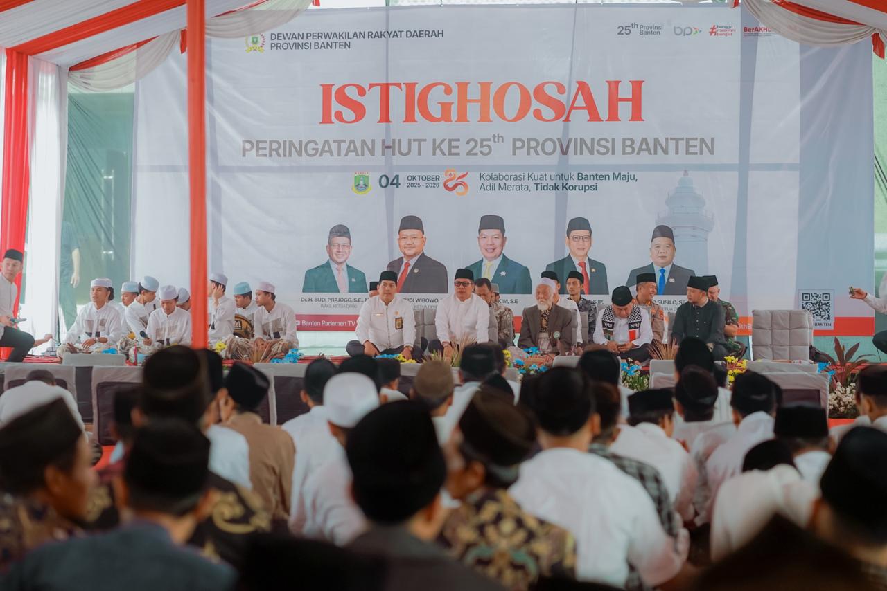 Kegiatan Istighosah HUT Banten Part 1 berlangsung dengan khidmat dan penuh makna sebagai bentuk rasa syukur atas hari jadi Provinsi Banten. Acara ini turut dihadiri oleh jajaran DPRD Provinsi Banten, para tokoh masyarakat, serta berbagai elemen pemerintah dan masyarakat. Melalui kegiatan istighosah ini, seluruh peserta bersama-sama memanjatkan doa untuk kemajuan, kesejahteraan, dan keberkahan bagi Provinsi Banten agar senantiasa maju, aman, dan religius.